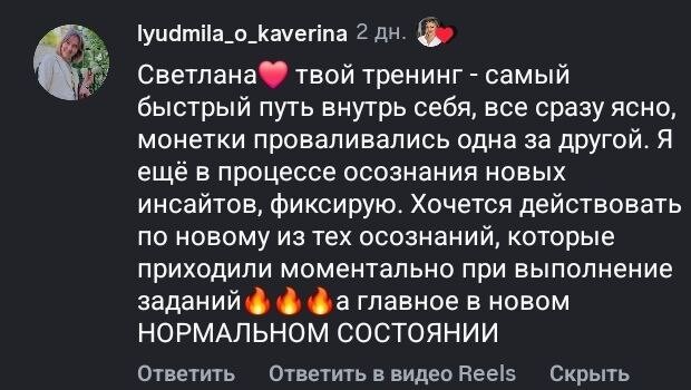 - глубокие упражнения на понимание, где мы пропускаем возможности, а какие стратегии, наоборот, позволяют нам получать нужные ресурсы от мира